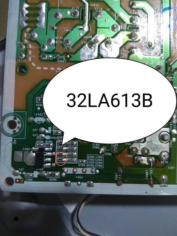Após remover R828 e R824 no LG 32LA613B: